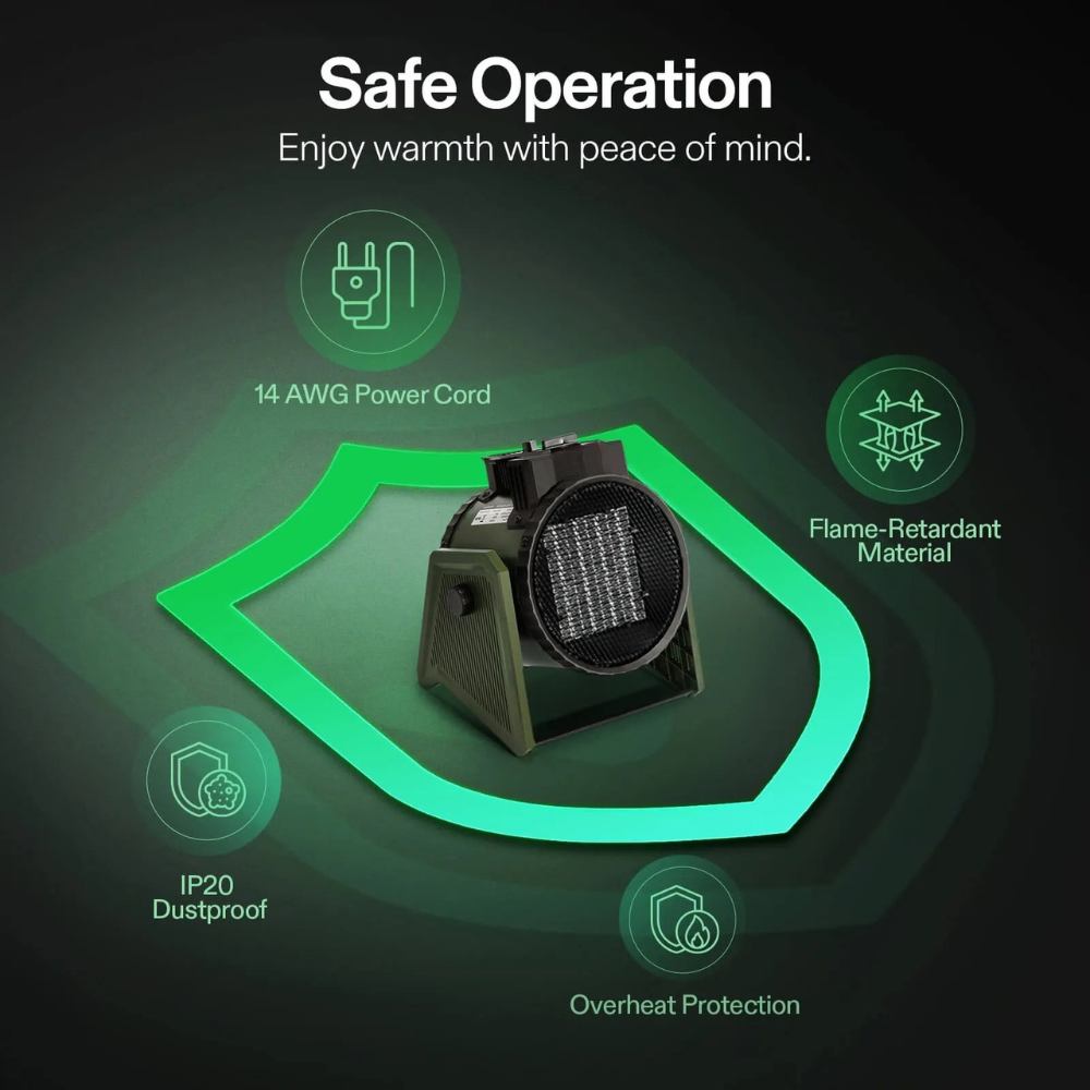 Safety Features — Built-in overheat shutoff and flame-retardant housing provide peace of mind while you stay warm.