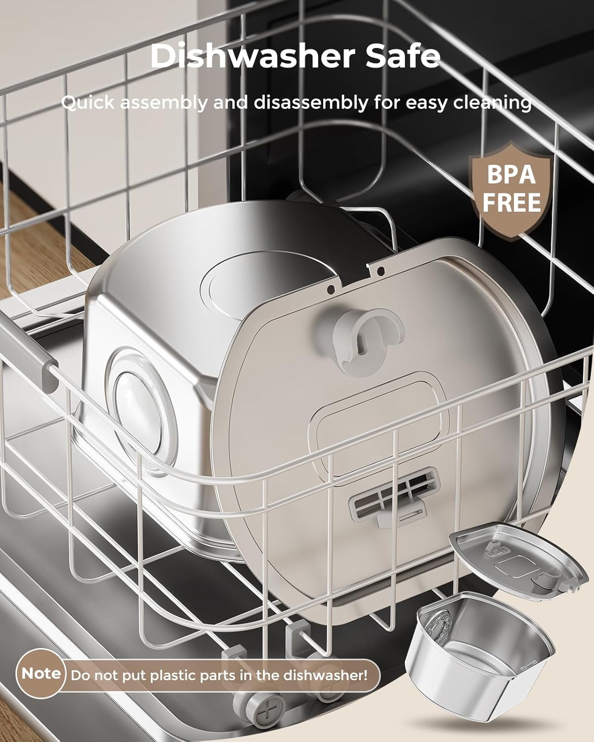Water Level Window & Stainless Steel Construction: Our automatic cat water fountain features a convenient water level window, allowing you to easily monitor water levels without removing the cover. Made from premium 304 stainless steel, it is corrosion-resistant and designed for high-temperature cleaning, ensuring your pet's health and safety.