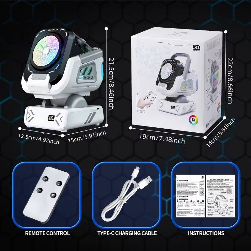 Enjoy up to 90 minutes of bubble-filled excitement, complete with a convenient battery level display that keeps you informed about when it’s time to recharge. As night falls, watch in awe as the machine showcases nine vibrant colors, creating a stunning light display that enhances the festive atmosphere.