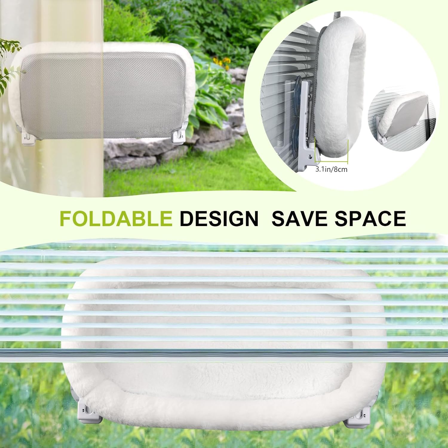 Convenient Foldable Design: This cat window perch is easily foldable for effortless storage, keeping your living space neat and tidy. Its cordless design allows your cat to jump freely without the hassle of tangled cords.